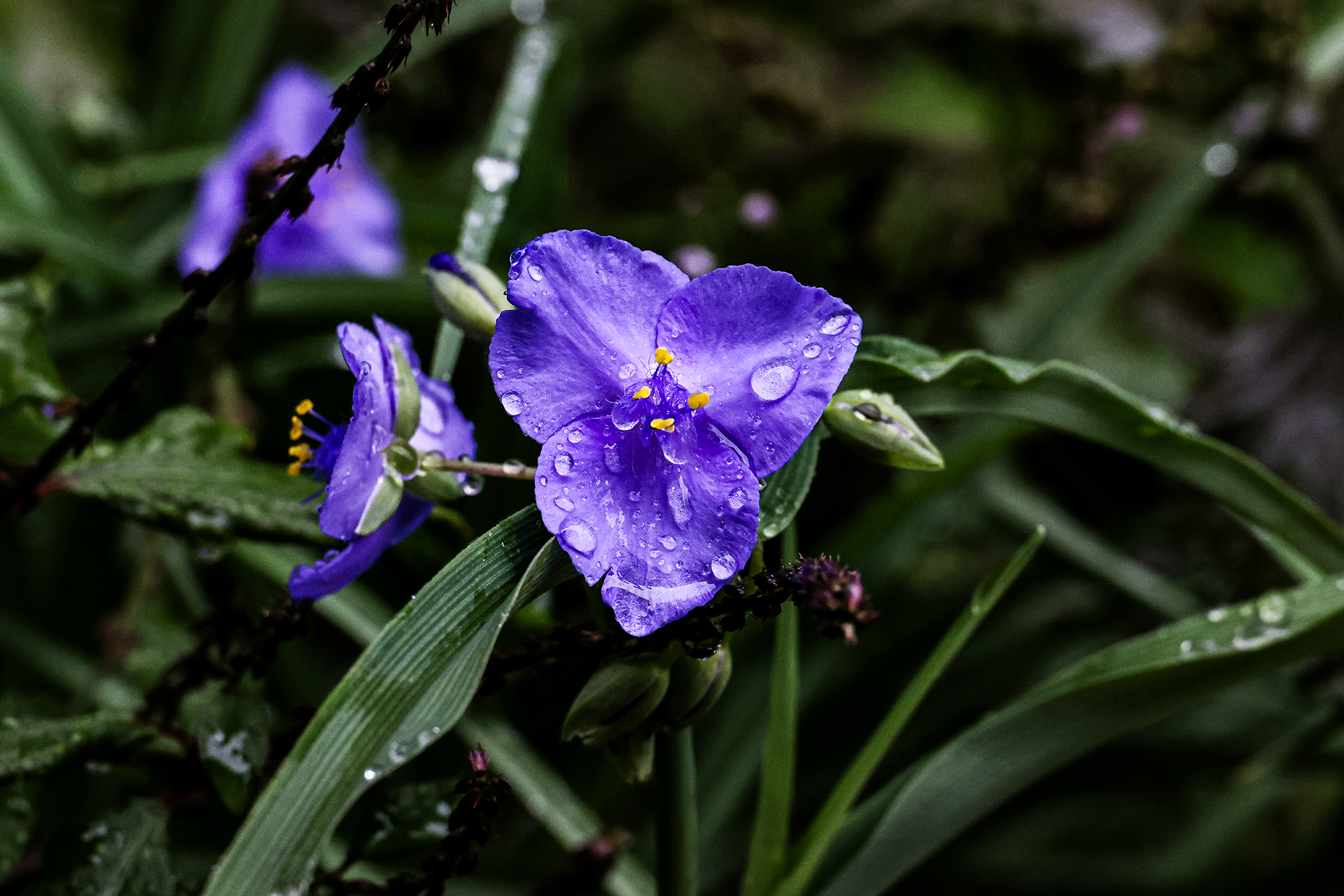 비내리는 추석날 화단에 핀 자주 달개비