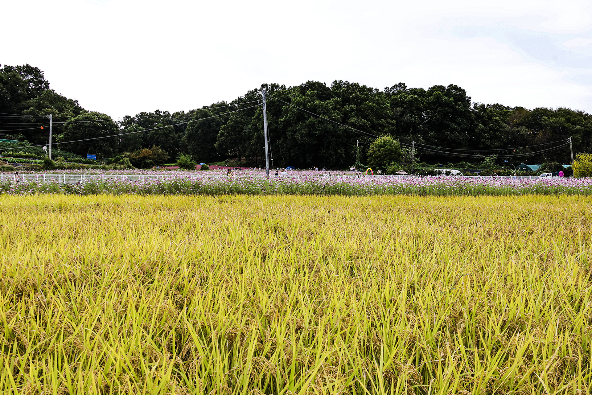 황금빛 으로 물든 벼이삭과 코스모스가 아름답게 핀 가을 풍경을 ~~~~~~~~~~~~~~~~~~~~~