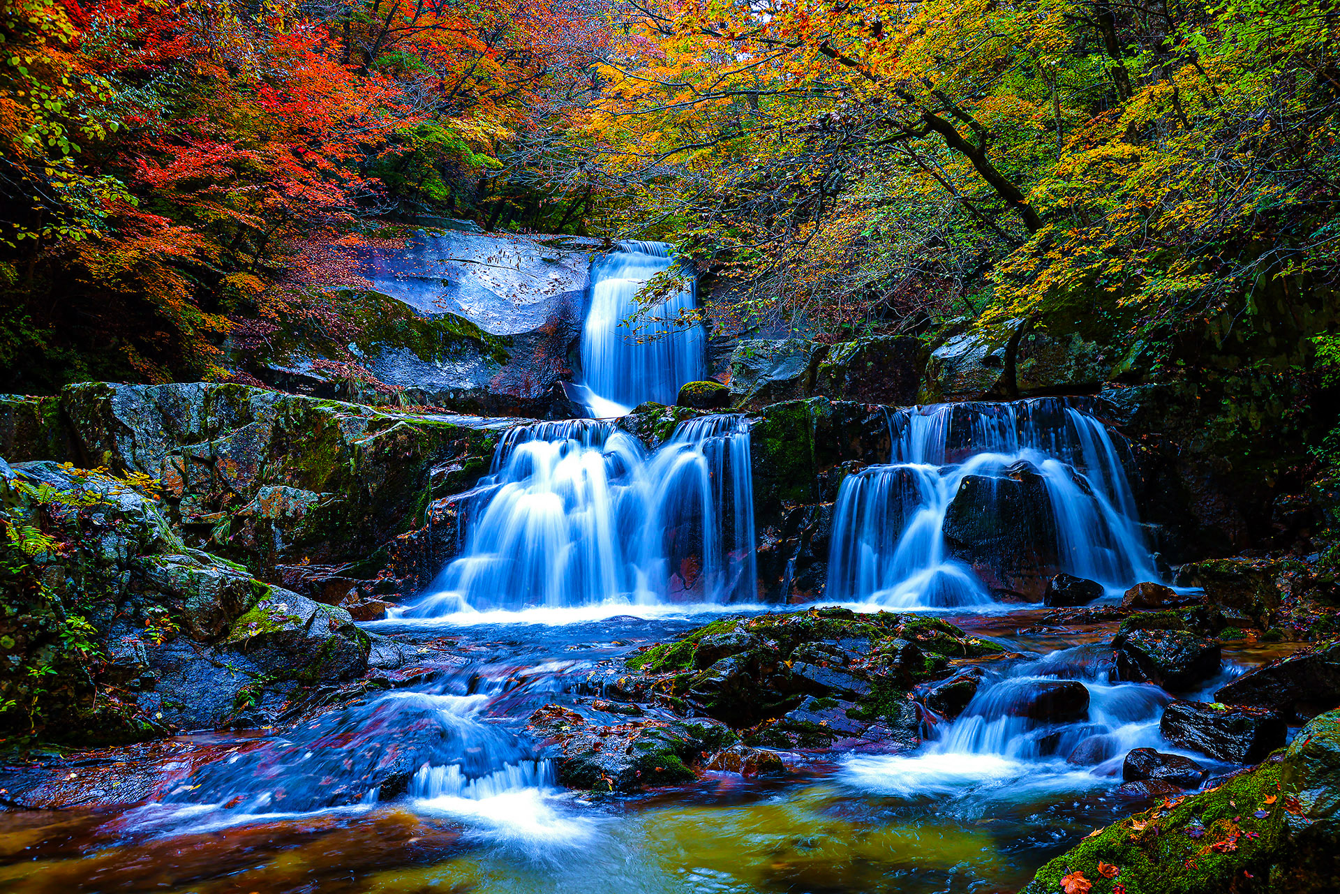 방태산의 가을 이단폭포.