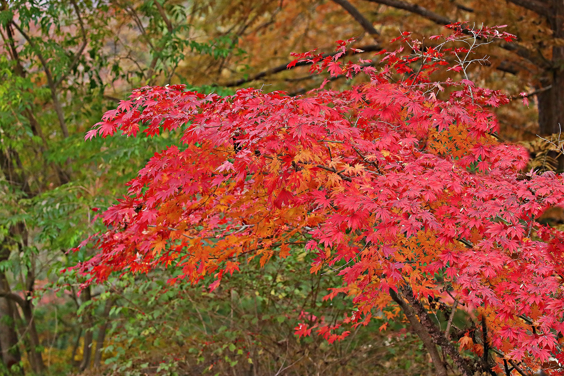 붉게 물든 당단풍나무....