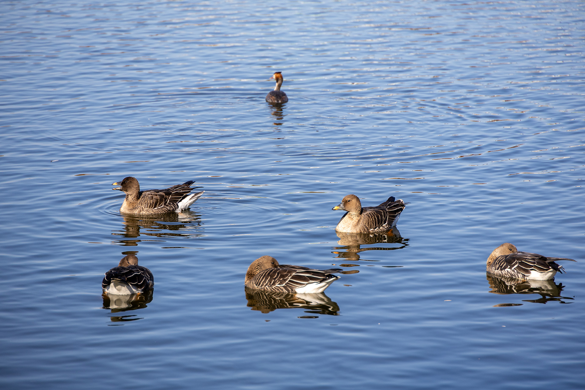기러기들은 유유자적 놀고 졸고 있고