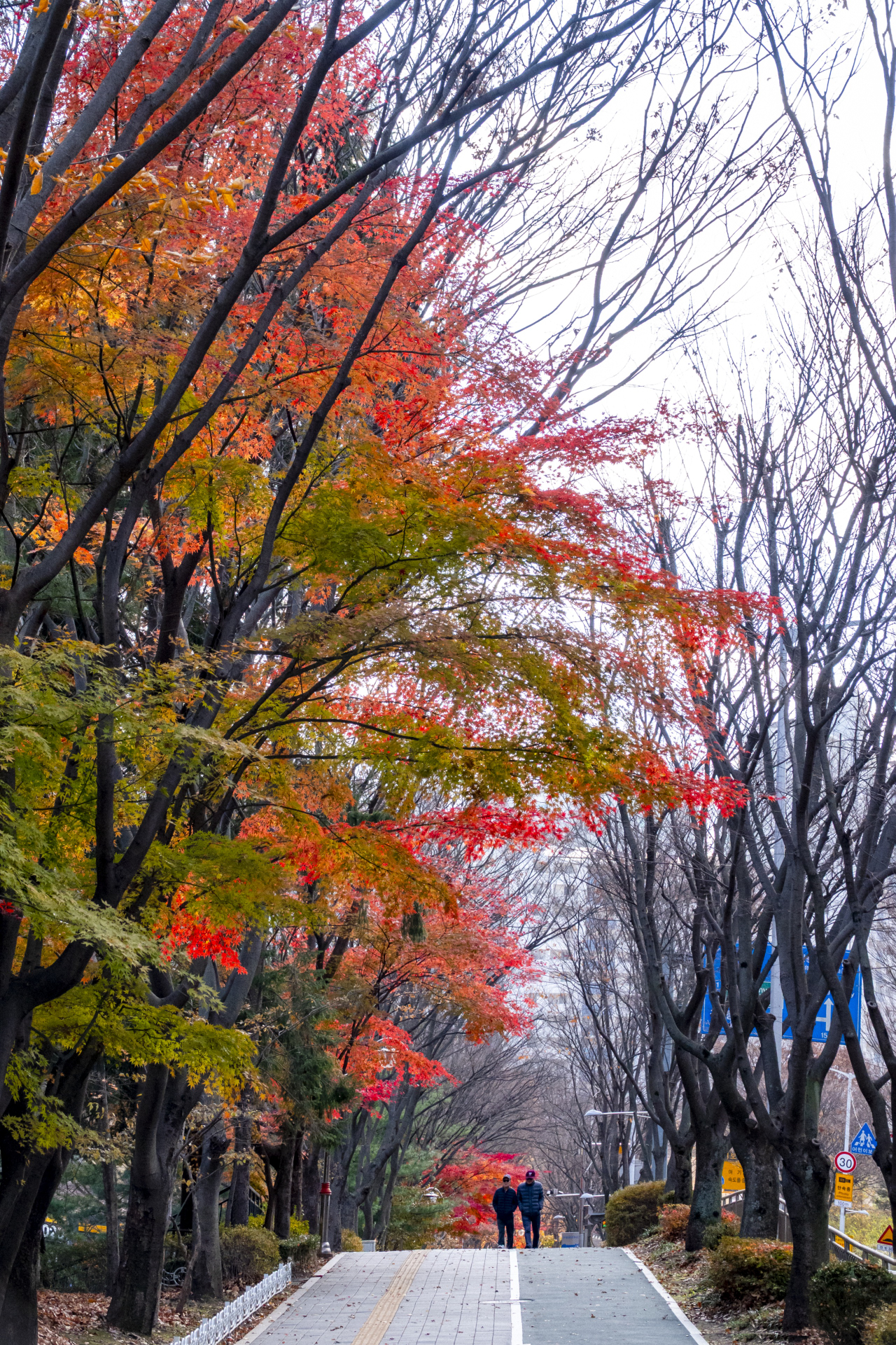 산책로 오른쪽 느티나무 단풍은 모두 졌는데