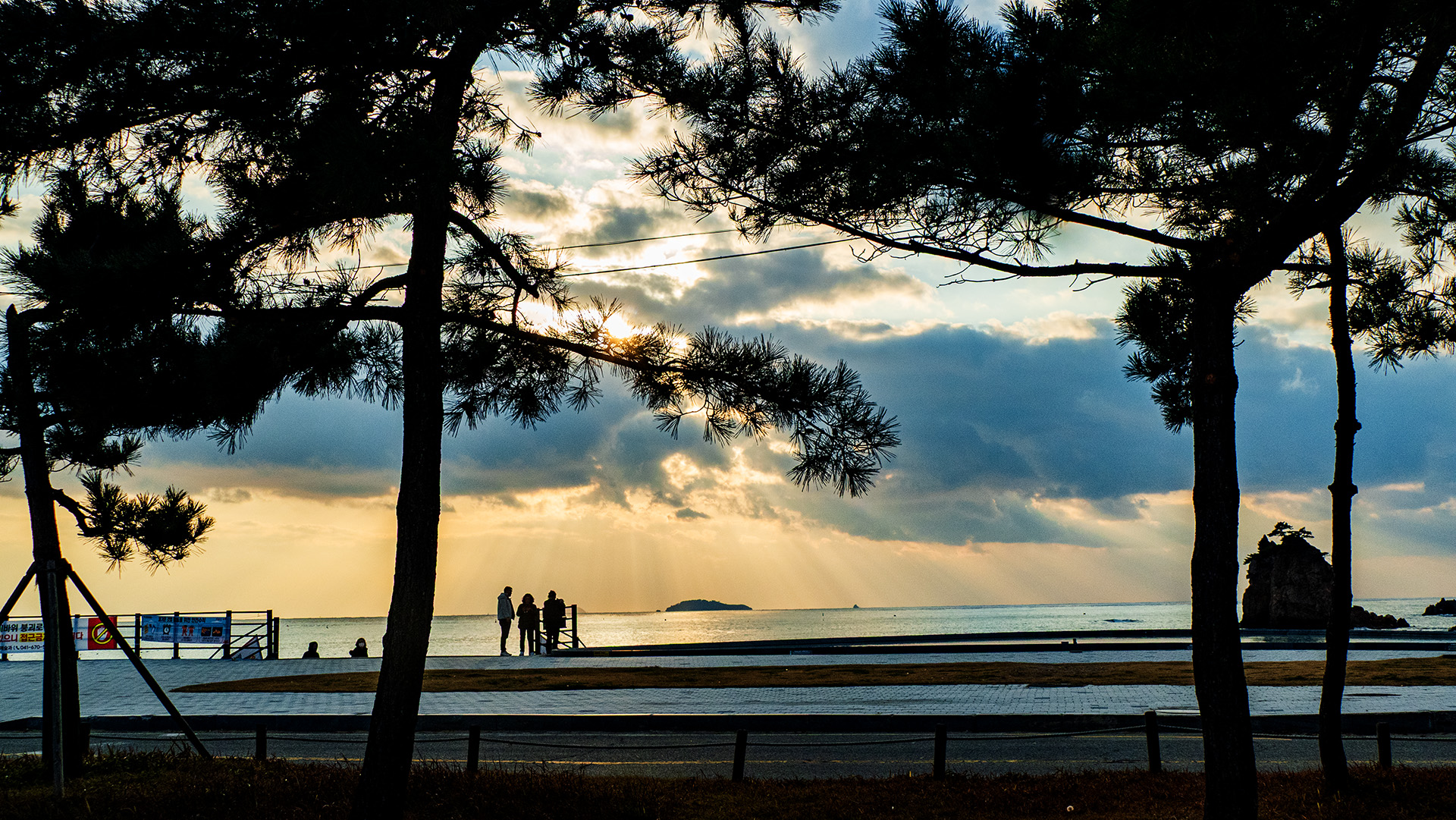 비록 구름이 무겁지만 늦가을의 바닷가 풍경이