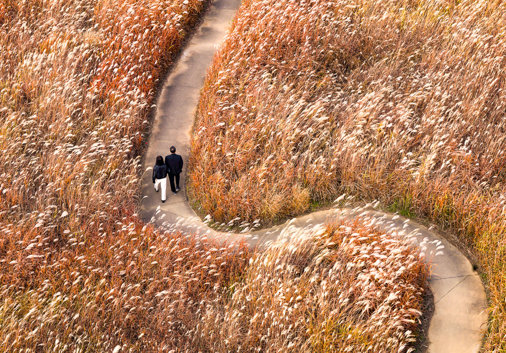 갈대숲 오솔길을 다정히 걷고 있는 중년의 부부를 바라보며.