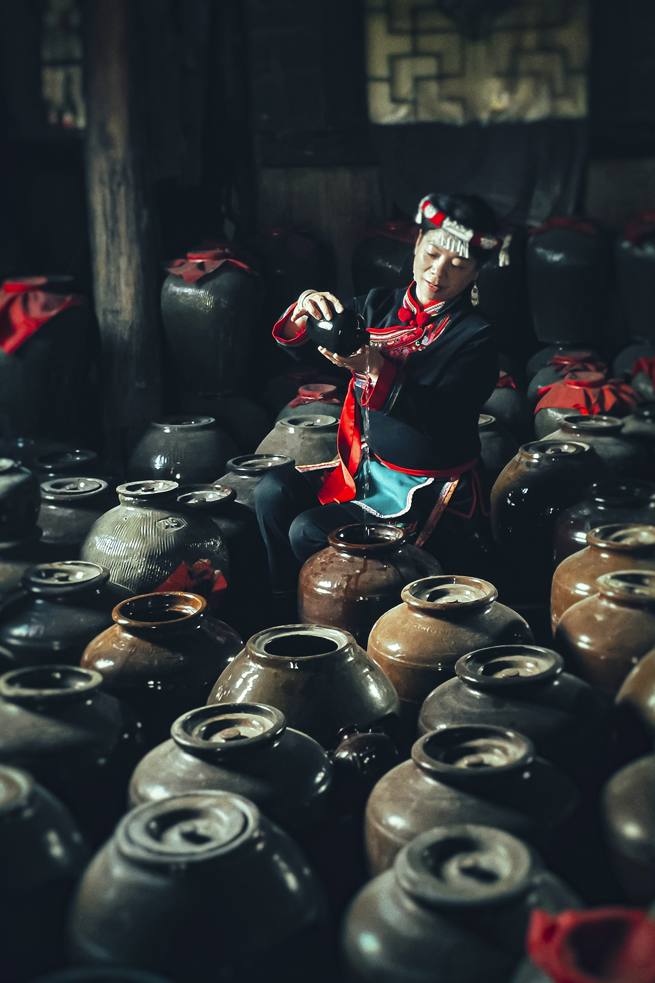 사족여인이 전통주 따르는 모습