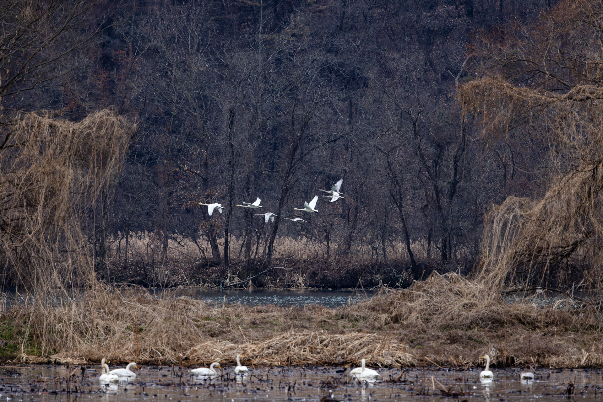 경안천에 고니들이 많이 와 있네요