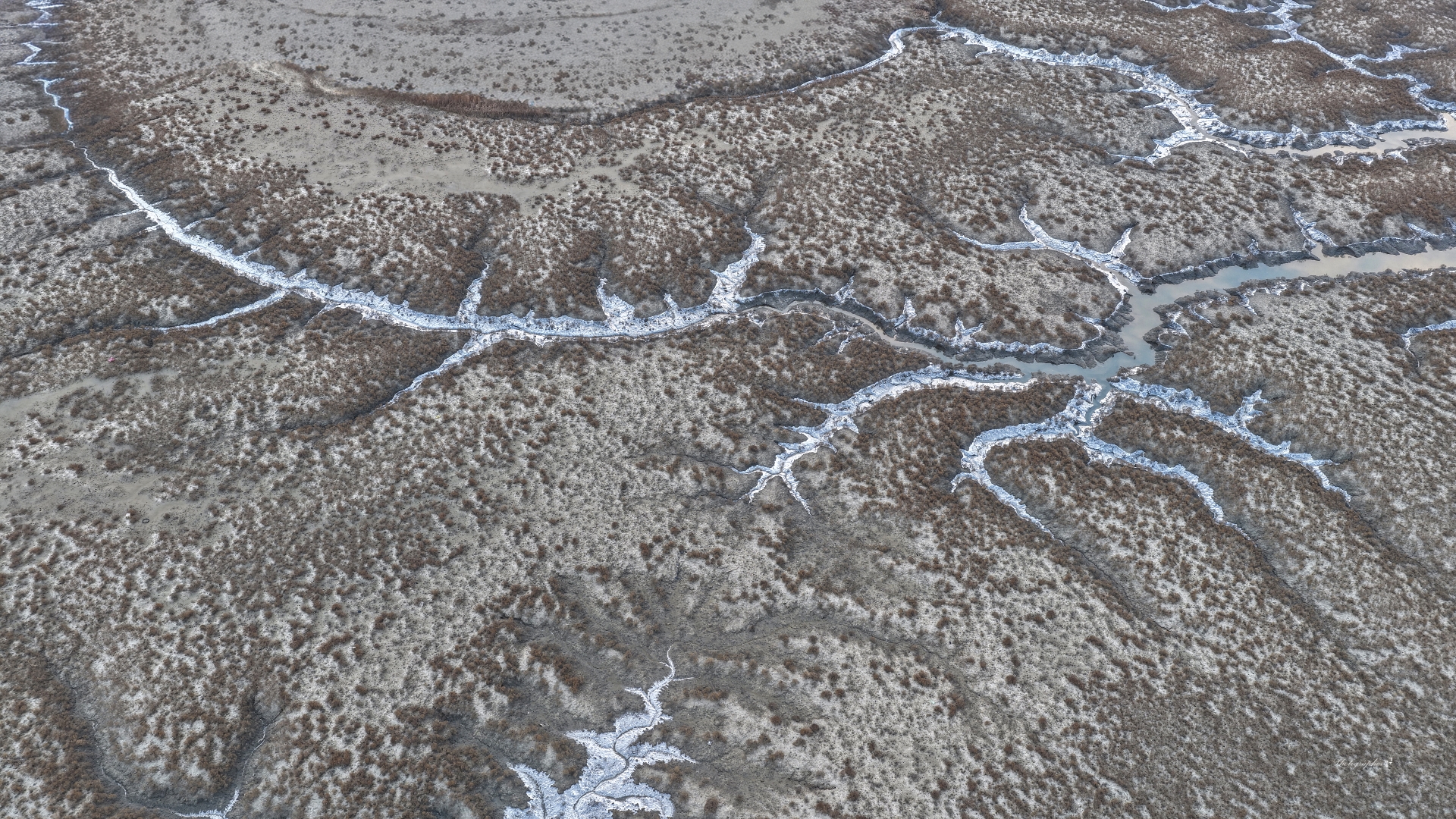 갯골에 살포시 내려앉은 서리 눈발은 불안에 떱니다.