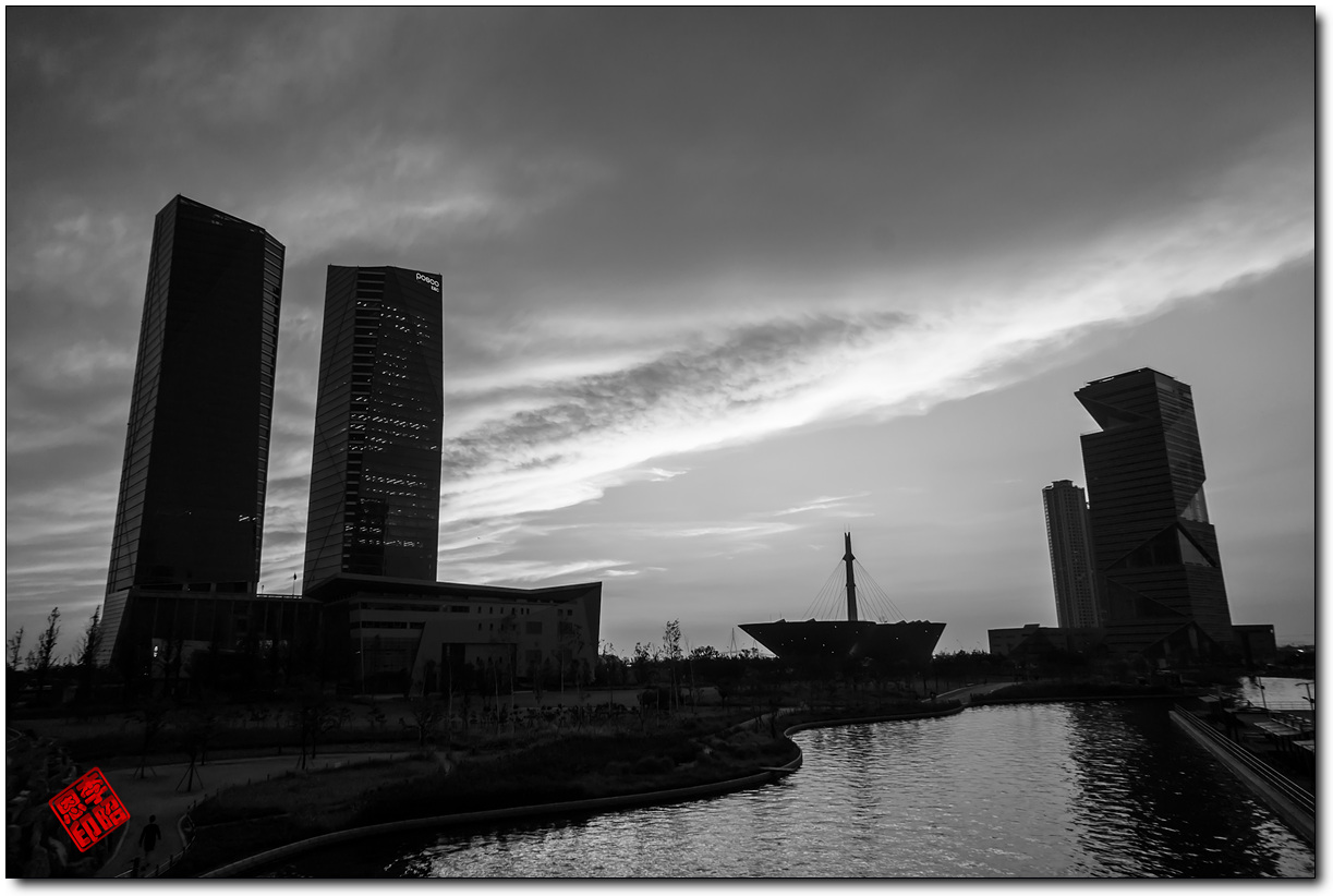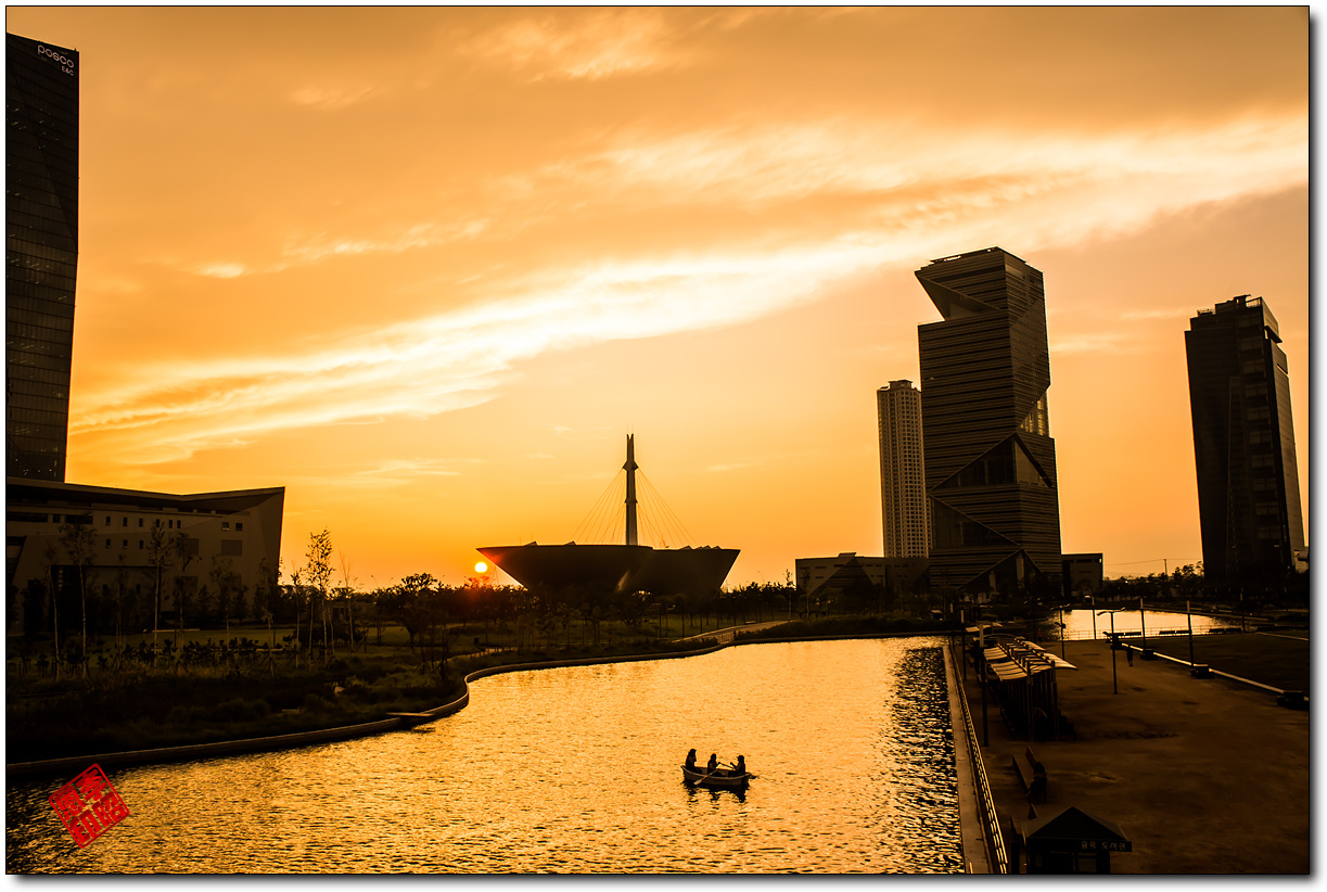 송도 센트럴 공원에있는 다리에서 노을 사진을 담아 봤습니다.