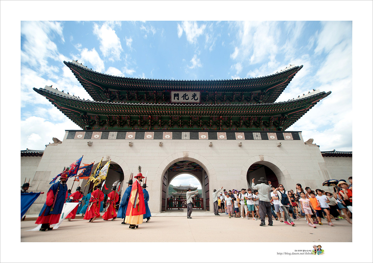 경복궁 수문장 교대식 15시에 맞추어 달려 나간다.