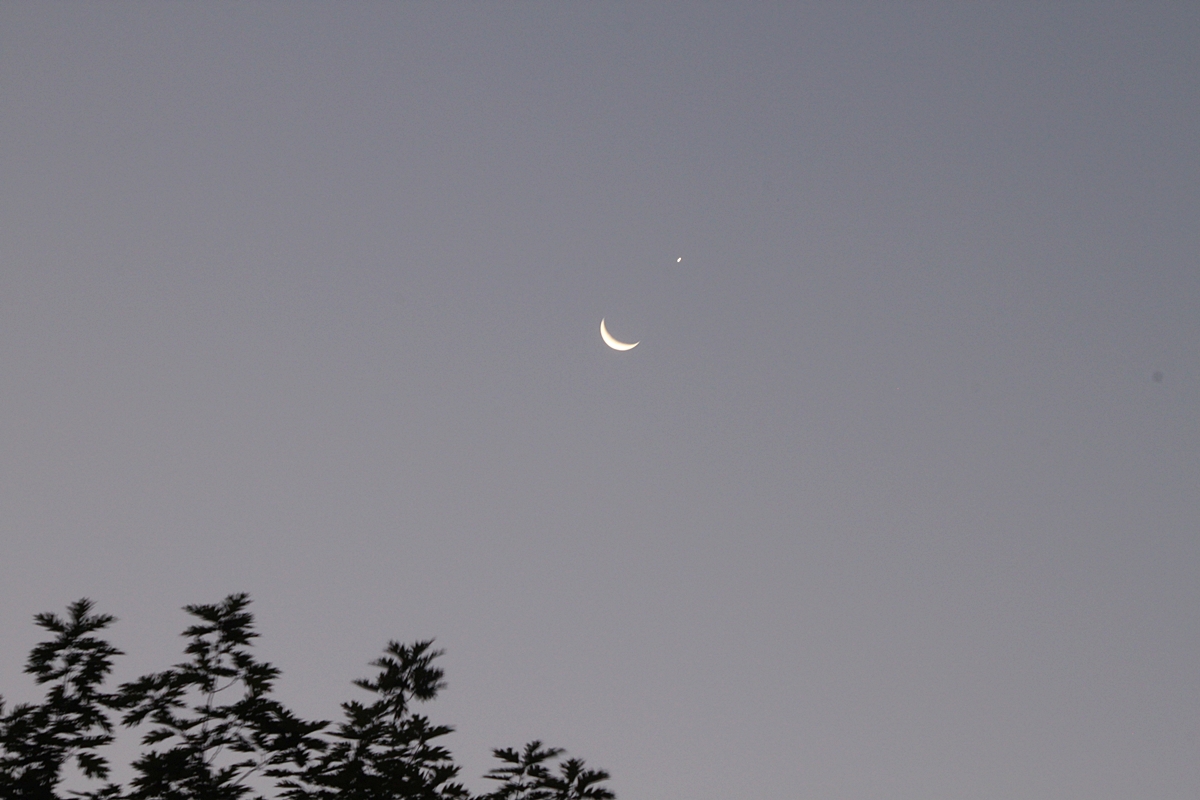 새벽 카메라 들고 나갔다가 이지러진 그믐달 앞에 빛나는 별이 있어 담았는데