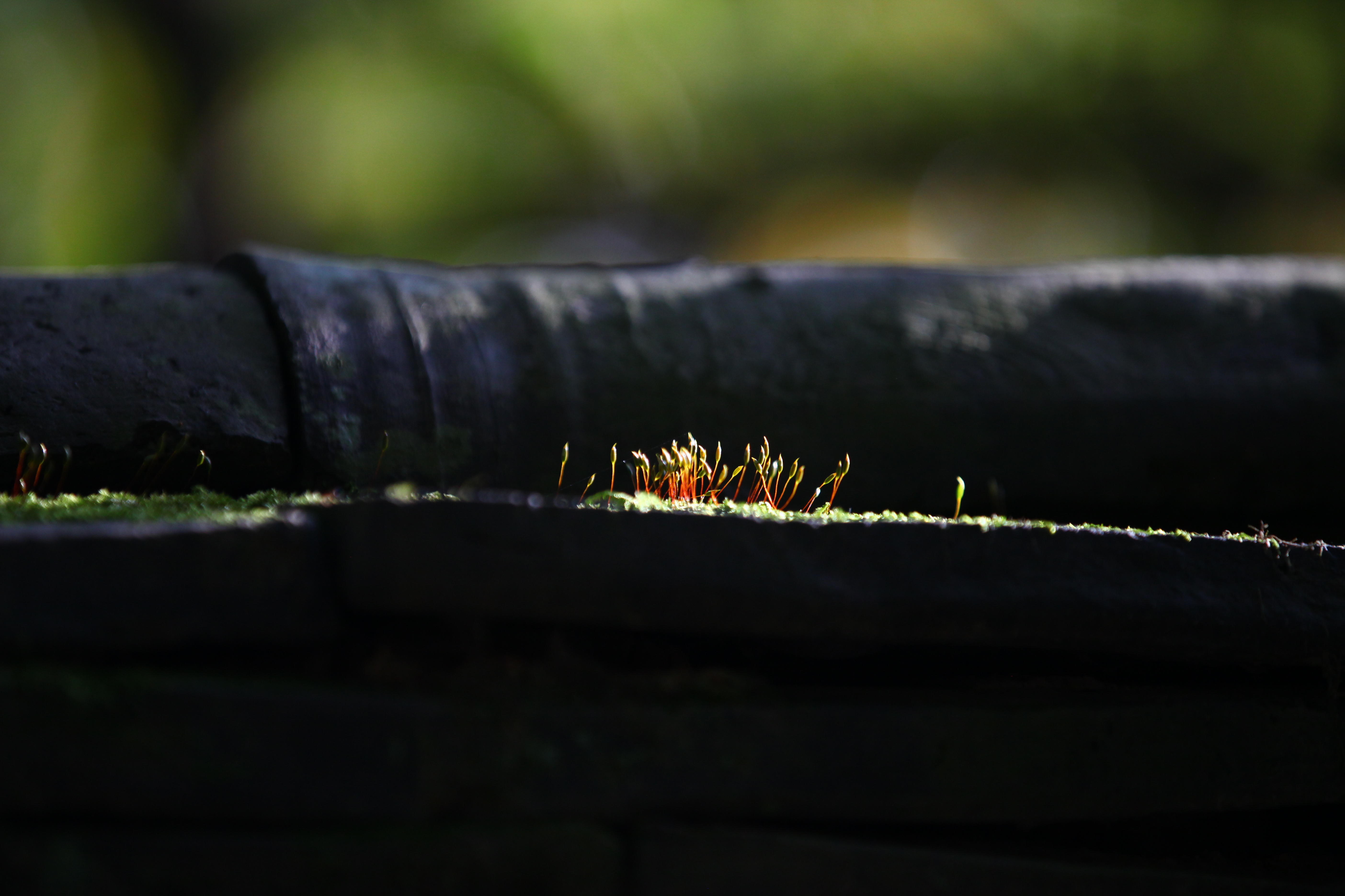 용인 민속촌 담장에 이끼에 햇살이....