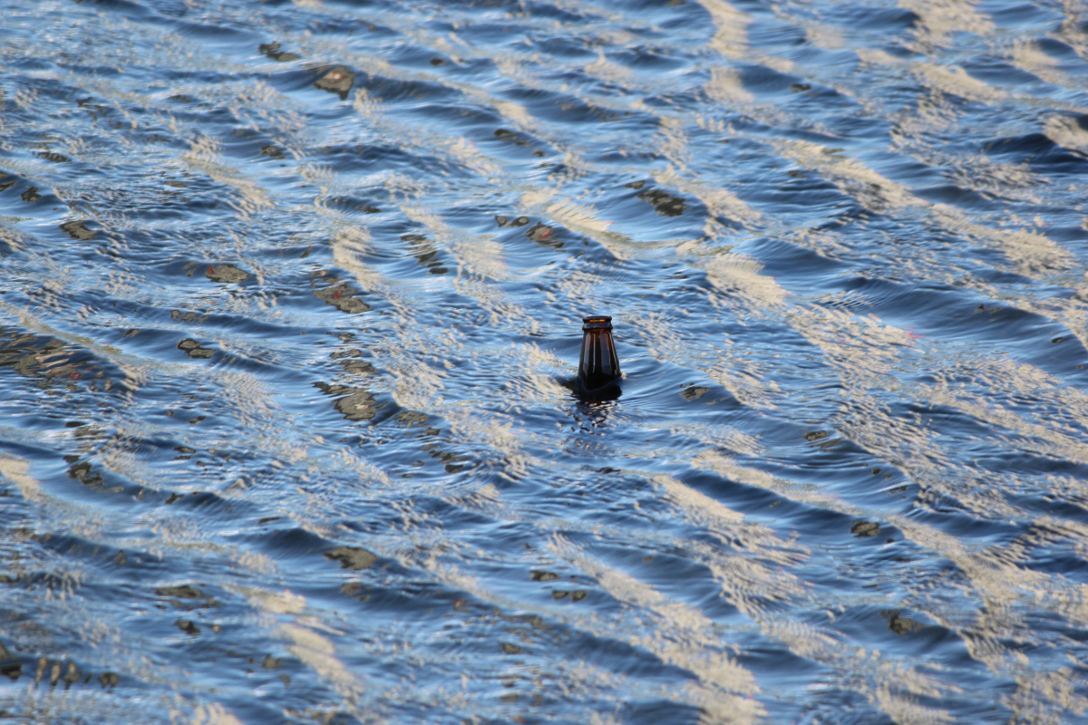 맑은물 안양천에 버려진 맥주병이 그 자리에 머물러 있다.