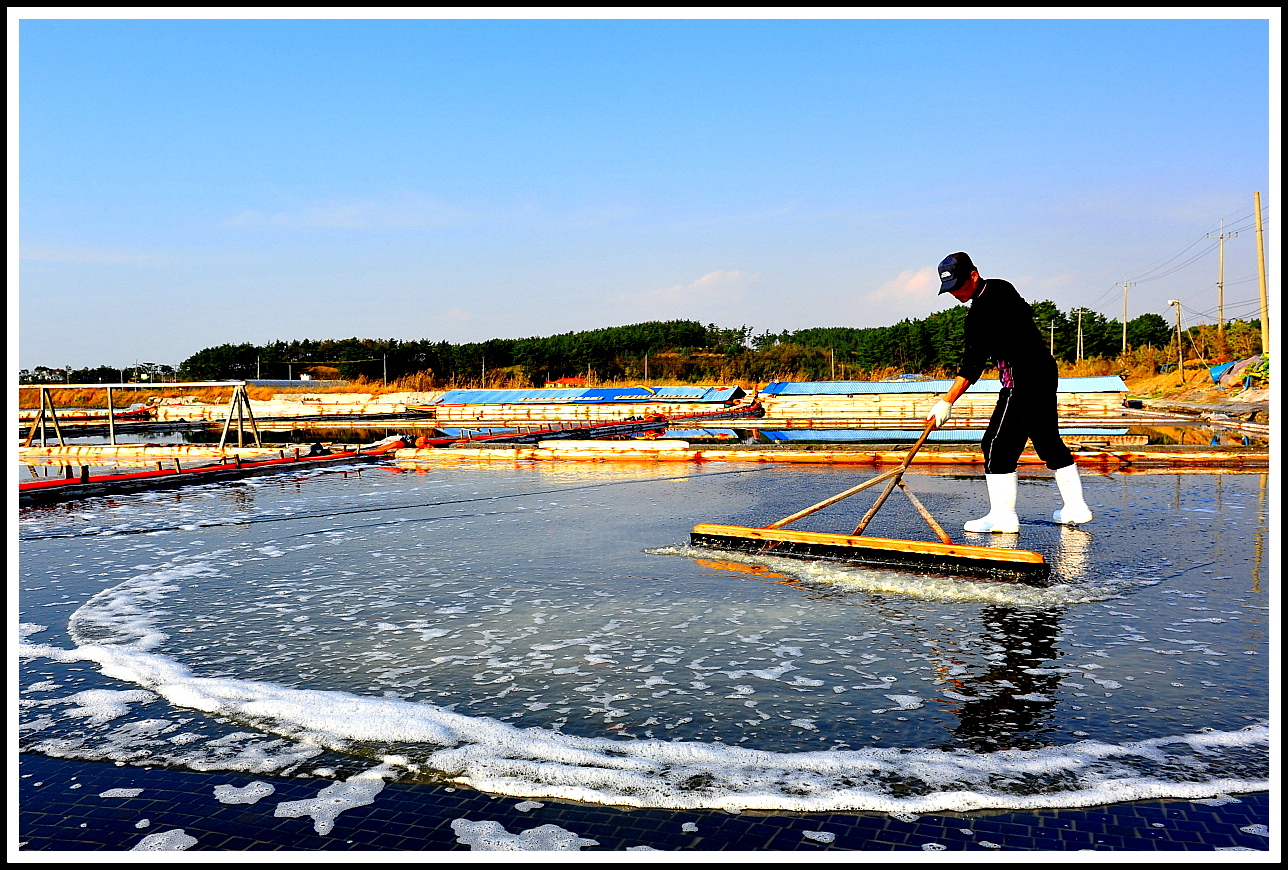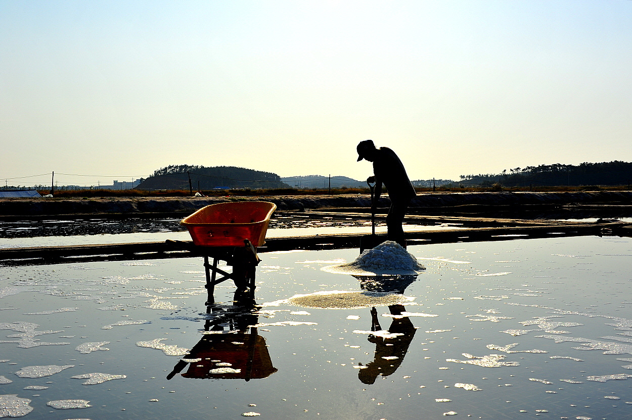 소금을 걷고있는 염부