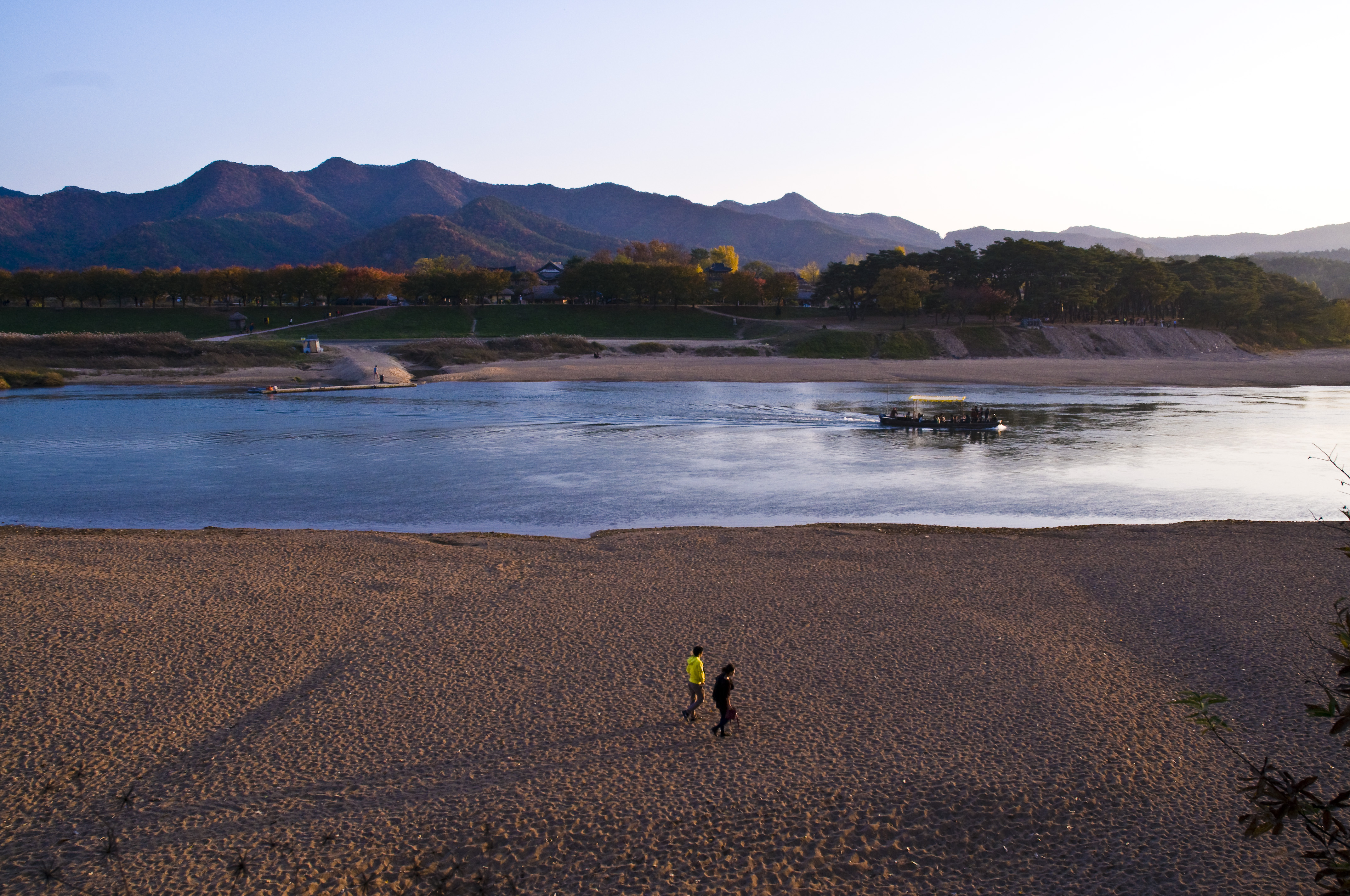 안동 화천서원에서 내려다본 하회마을의 강변 풍경입니다.