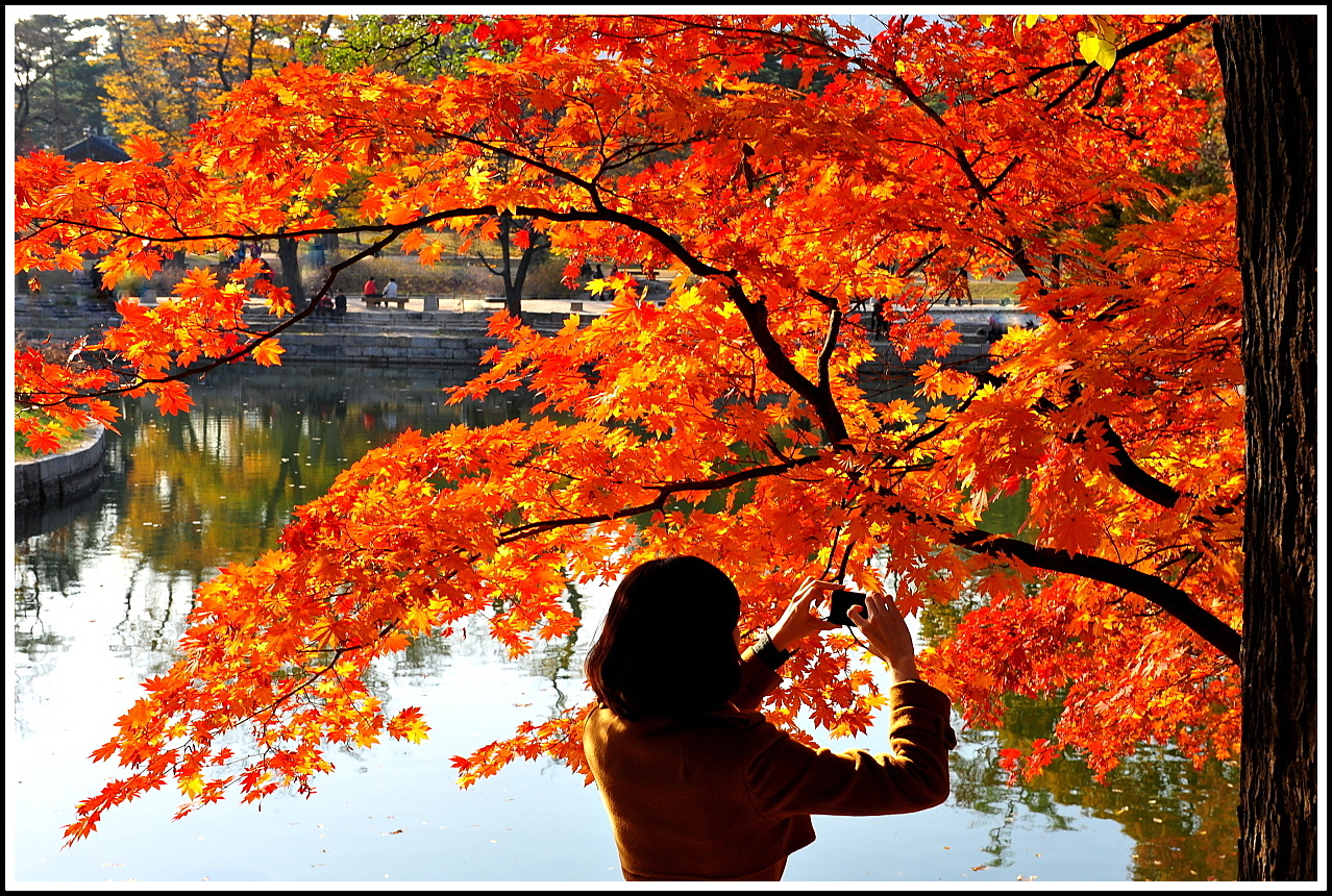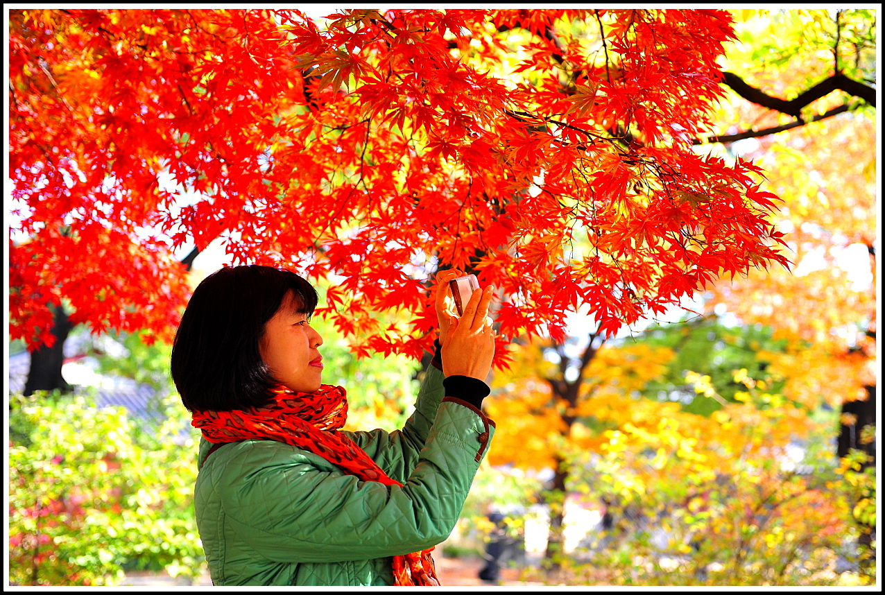 여인들의 마음은 고은 색의 단풍을 좋아 하나봅니다