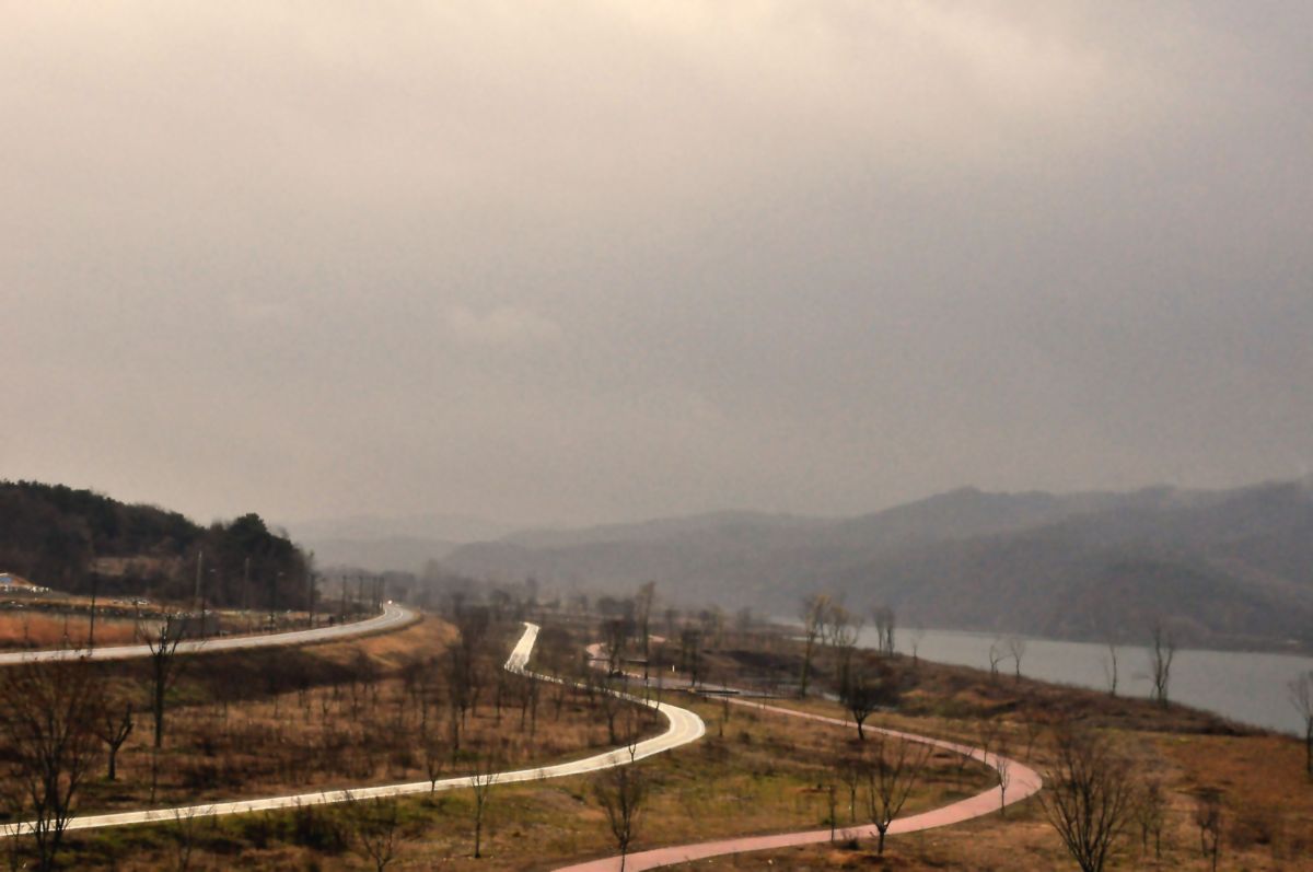 <남한강변 강천섬 공원 가을 보슬비 내리는날 소경>