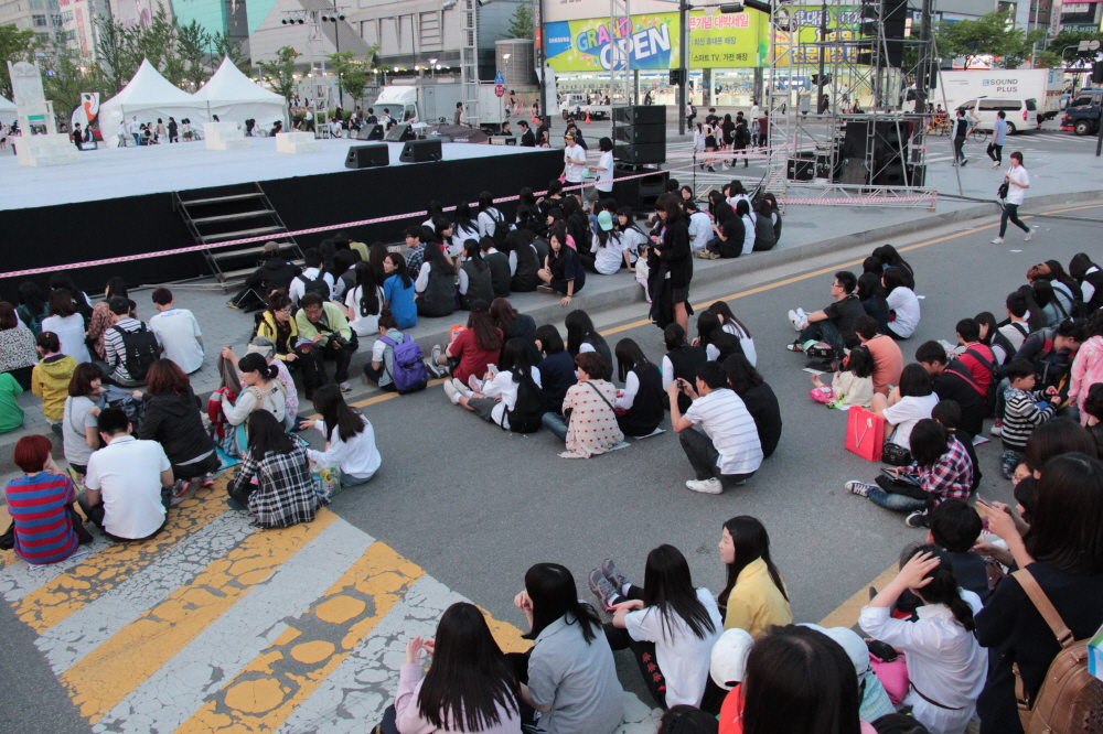 공연을 기다리는 사람들의 사진입니다.