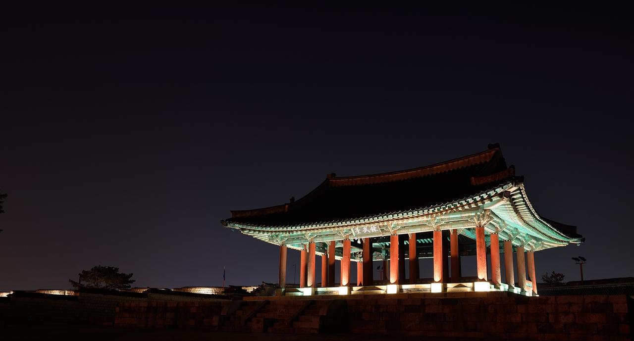 방화수류정 과 연무대 야경이 아름답네요