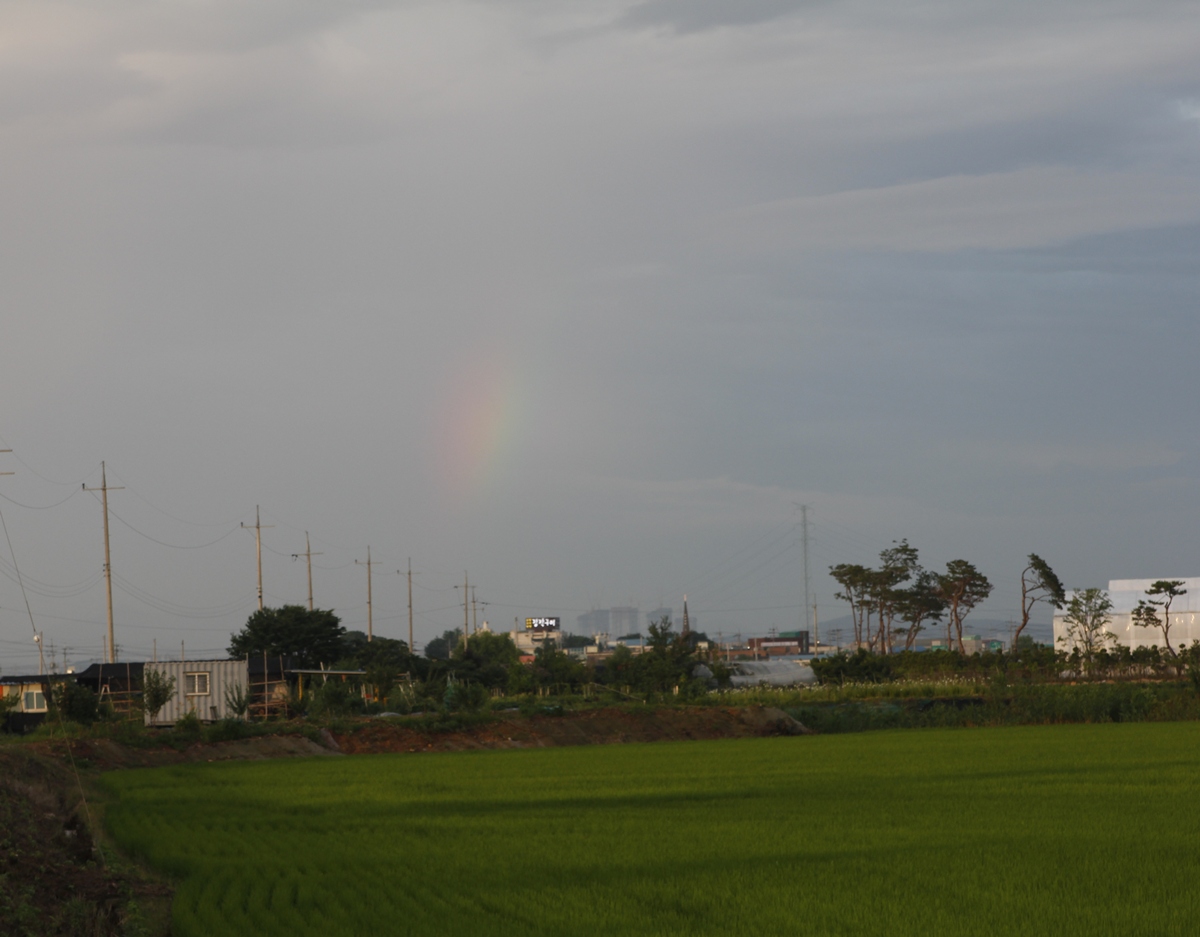 구름이 잔뜩 끼엇다가 정말 간만에  무지개가 뜨더니 눈깜짝할 새 사라져버리고