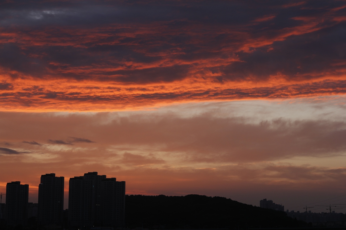 또 뜨다가 시뻘건 하늘로 변하는 오늘의 김포하늘은 변화무쌍 그 자체였읍니다.