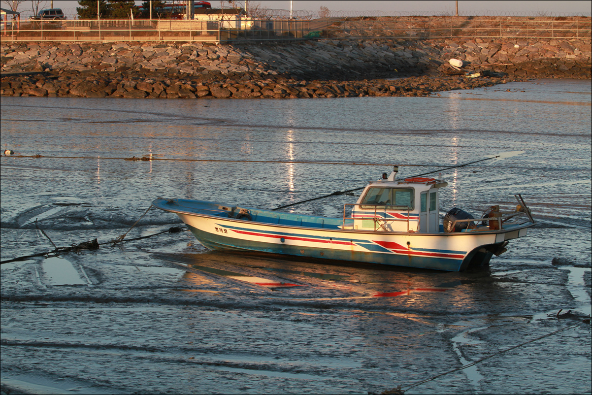 갯벌위에서 쉬고있는 배의 모습도 편안해 보입니다.