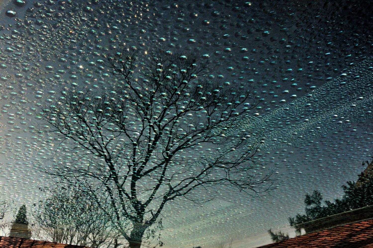우물에 맺힌 물방울과 반영
