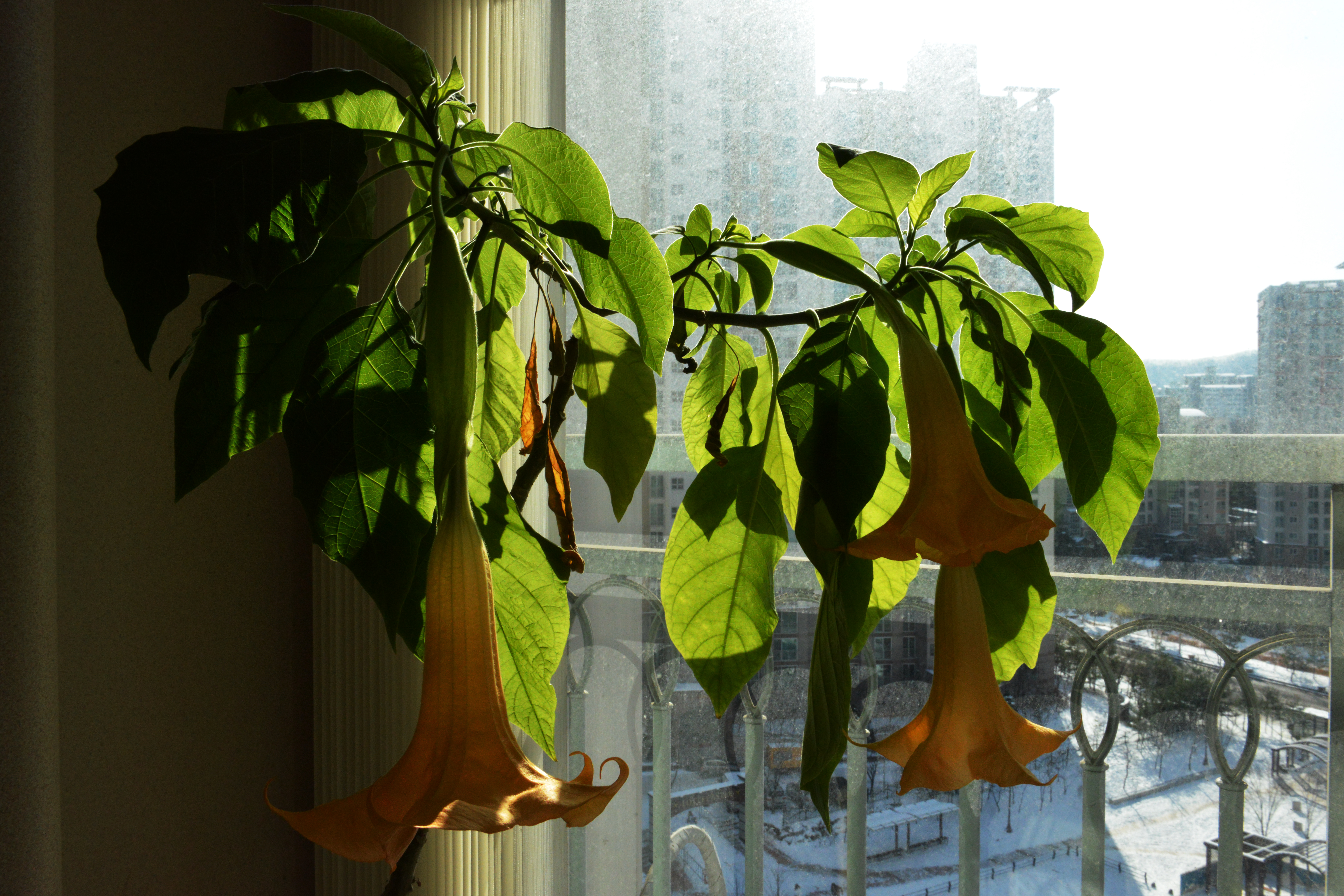 12월 우리집 창가에 또 피어난 천사의 나팔꽃