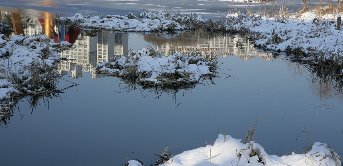 호수면이 살짝 얼어있다