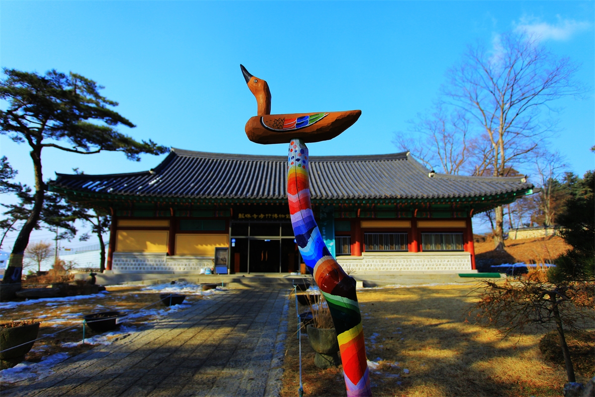 솟대는 일반적으로 채색이되지 않으나 용주사의 솟대는 채색이 무척 아름답다.