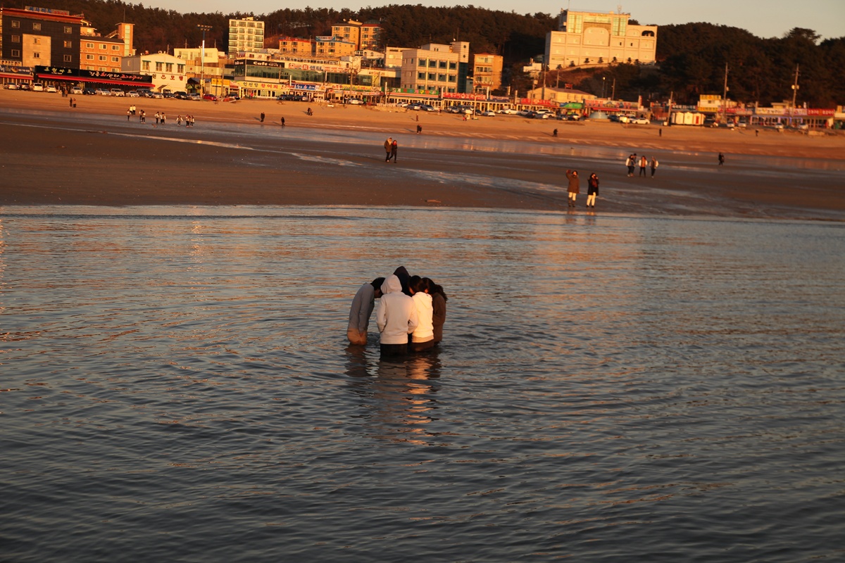 투표하고 바다를 찾은 ...추위도 아랑곳않는