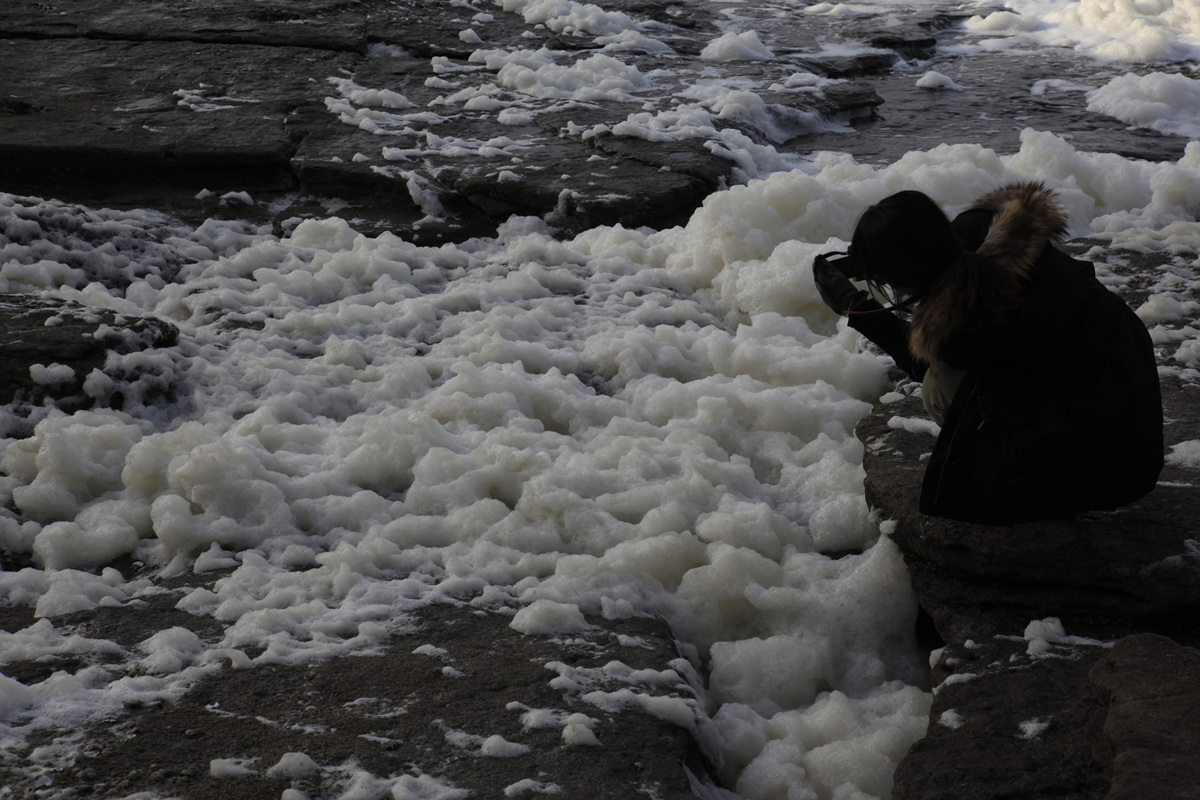 세찬 파도에 밀려나온 거품에 매료되어 추위도 아랑곳 하지안고 열정으로 담는 진사님
