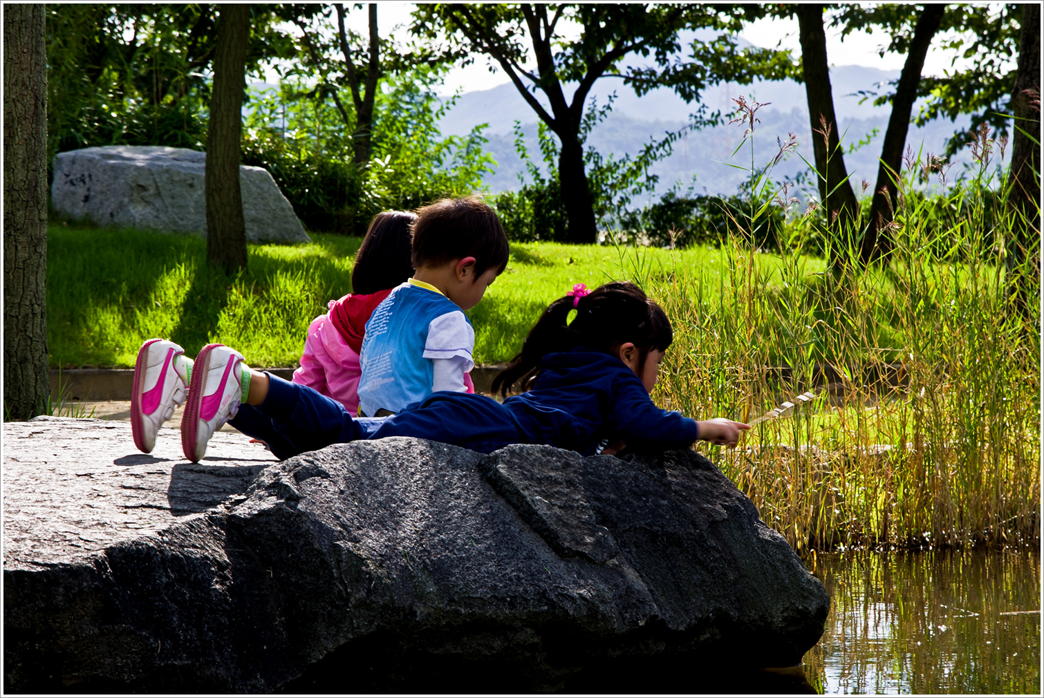 여름 날에 꼬마들이 예쁘게 놀고 있습니다.