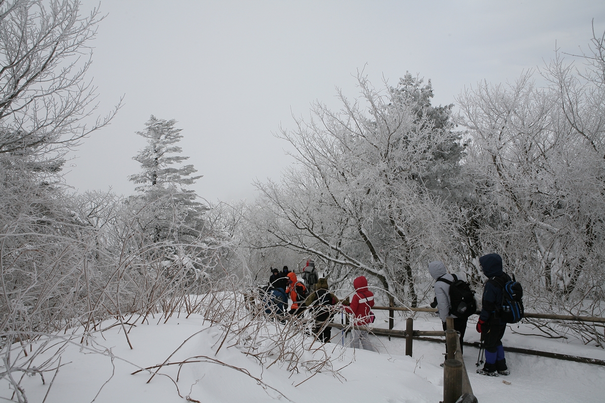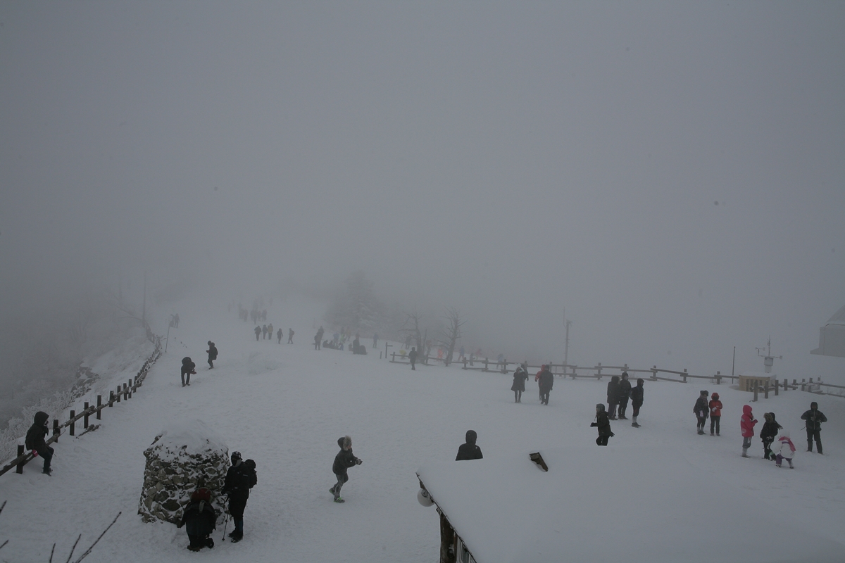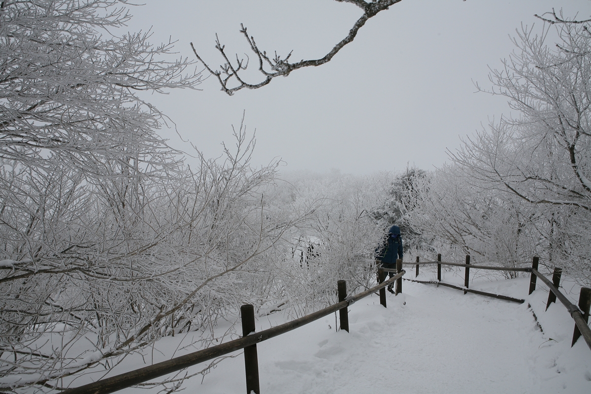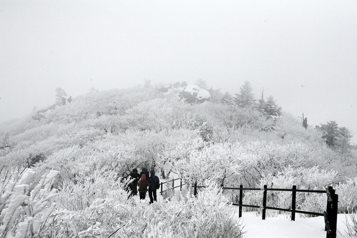 영하 13도 눈바람에 천지가 부옇게 ....향적봉