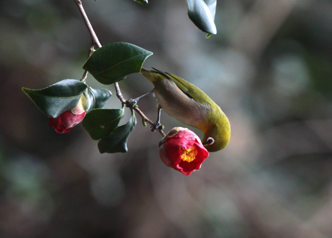 겨울 동백에 찾아온 동박새^