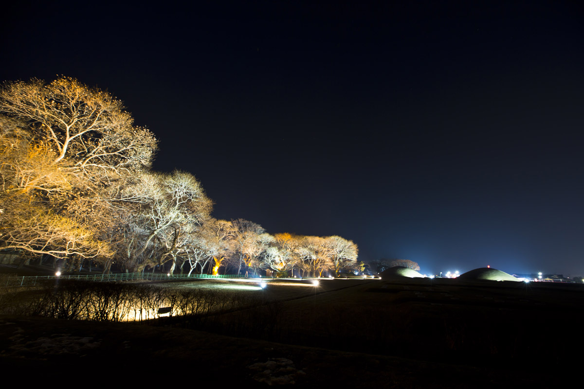 경주 첨성대 부근의 오릉과 나목이 불빛속에 무척 아름다웠습니다