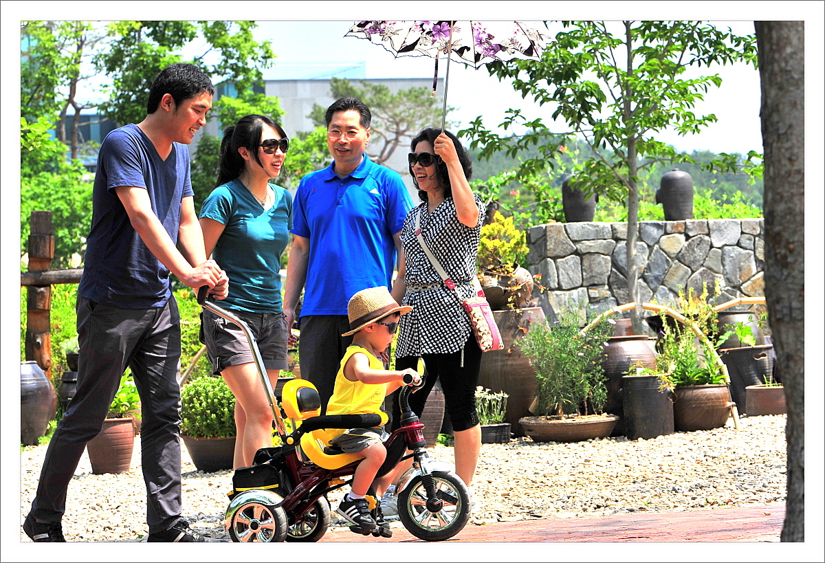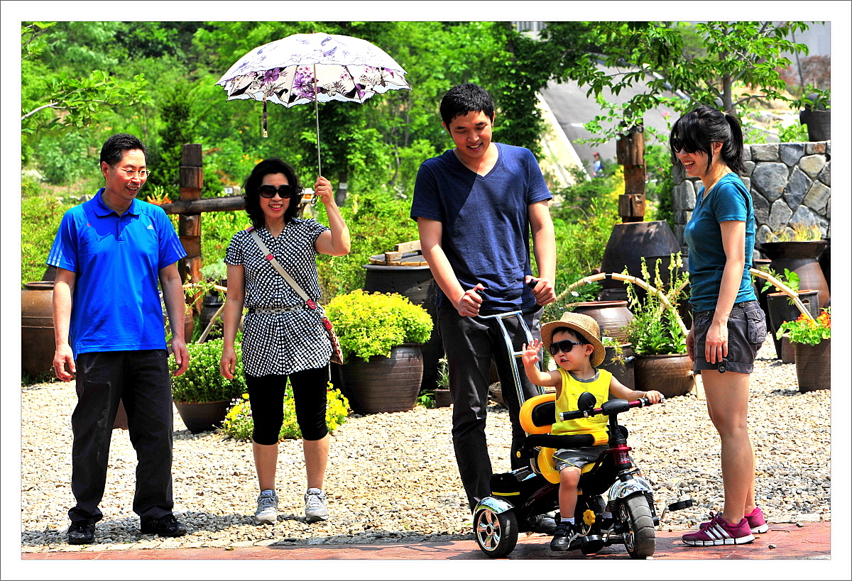 수목원에 놀려온 가족 손자의 재룡에 즐거워하고있읍니다