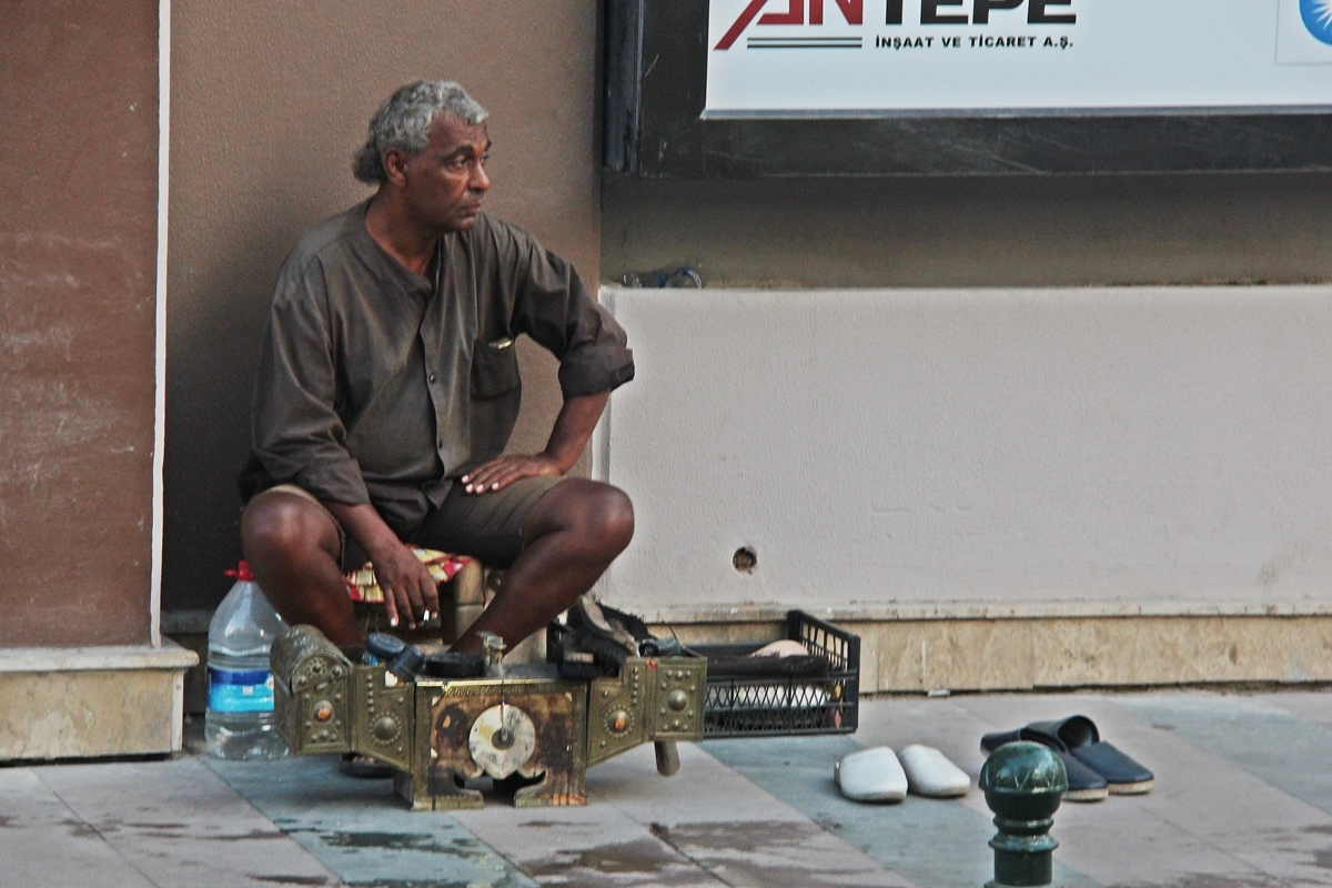 터키 여행 중, 길가에 앉아있는 구두닦이 분의 모습이 제 발길을 잡았습니다.
