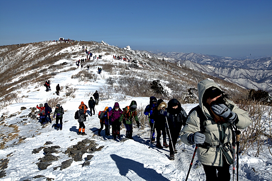 체감 온도 18도라는데 아랑곶 없이 등산하는 많은