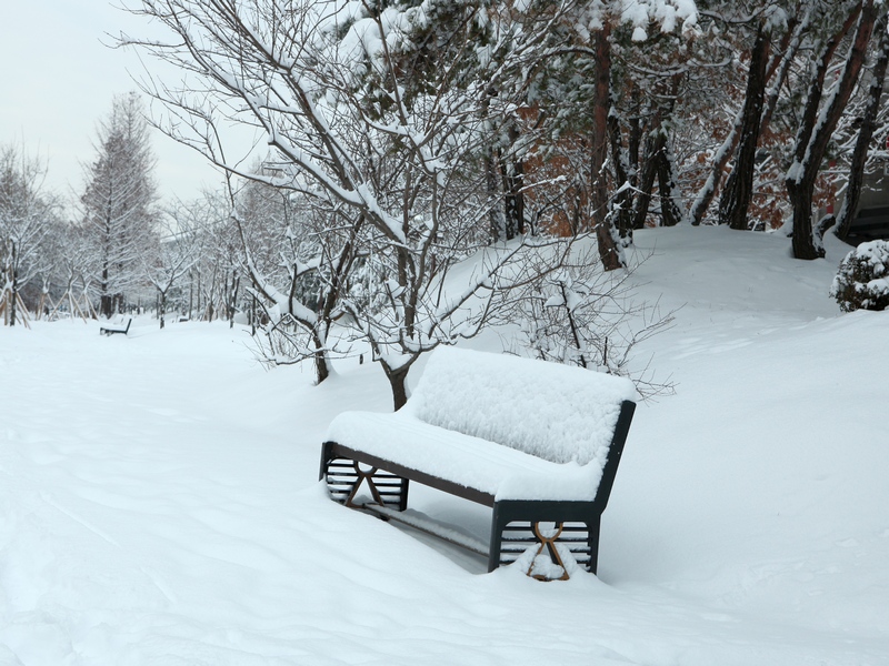 봄을 기다리는 눈싸인 의자