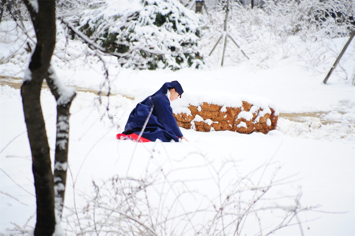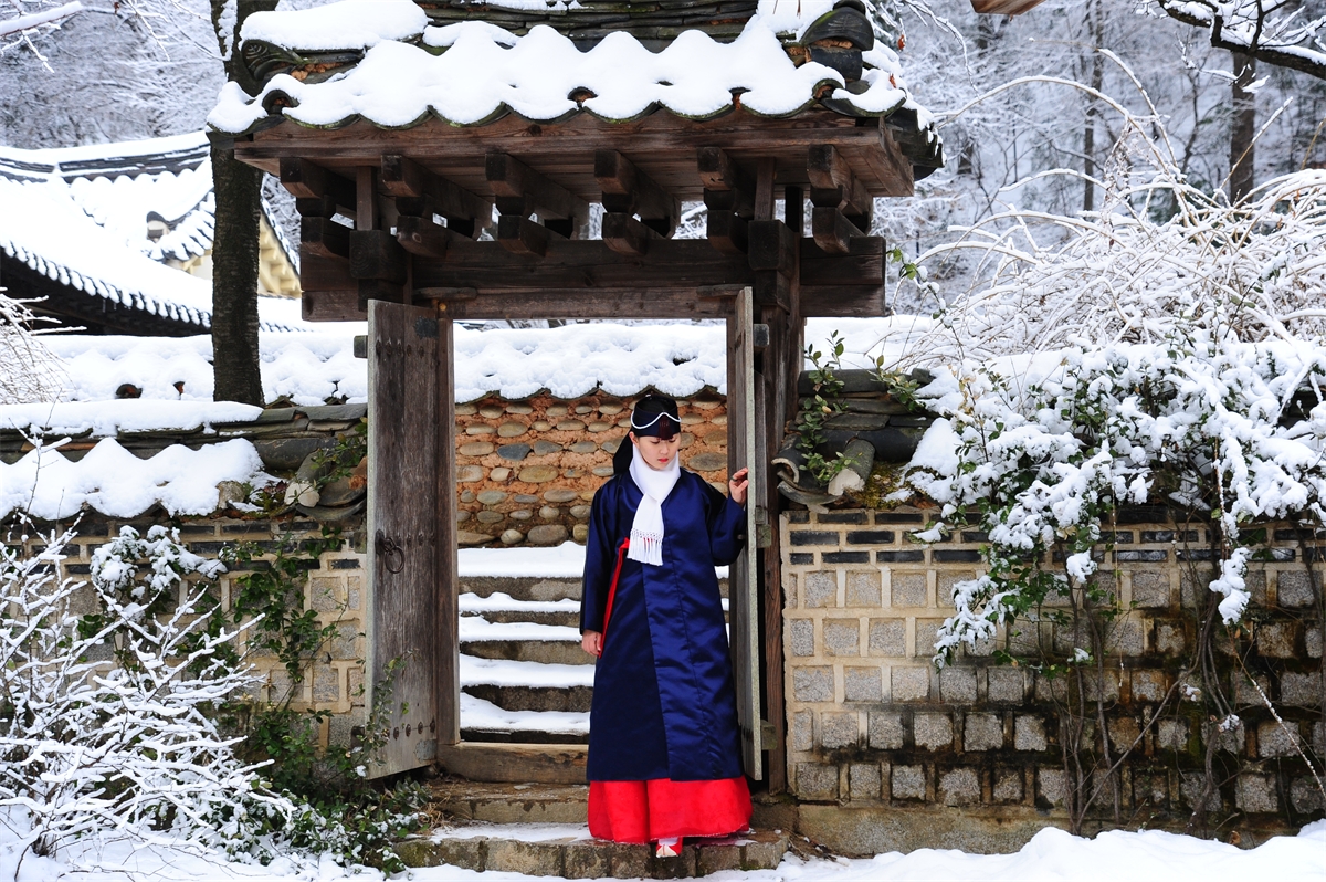 눈 많은날 민속촌에서