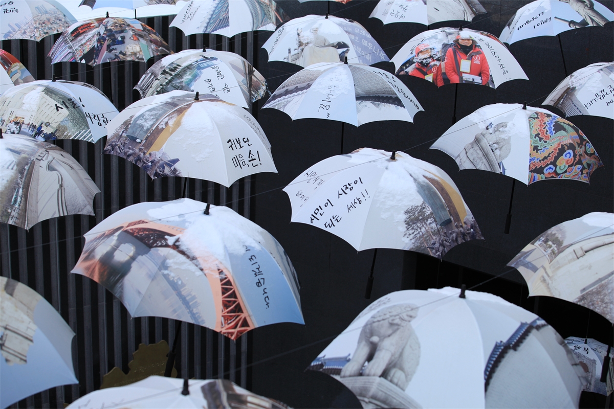서울시청에 우산을 장식