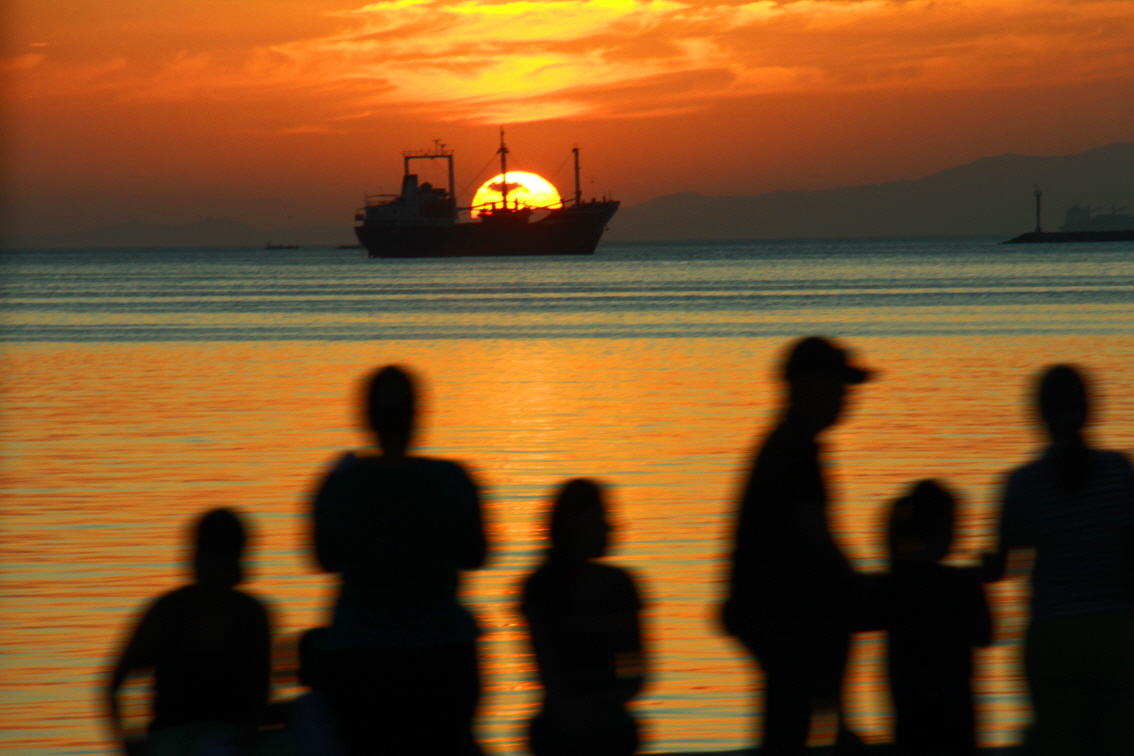 필리핀 마닐라만의 일몰 풍경
