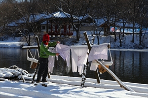 눈이 가고 그 위로 또 다시 발자국이 간다