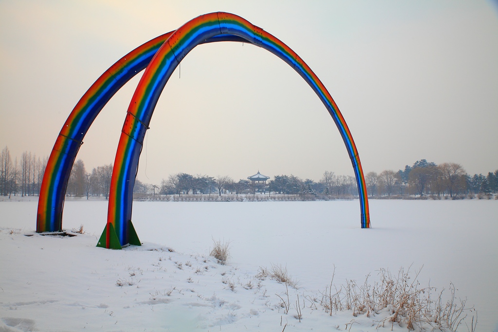 무지개가 있는 겨울 풍경