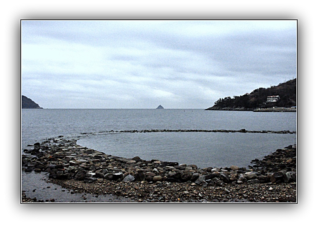 남해홍현 해라우지마을은 옛^조상님들이 바닷가를 돌로막아 독살<작은고기는 새어나가고>어업행위를 하던 석방렴입니다