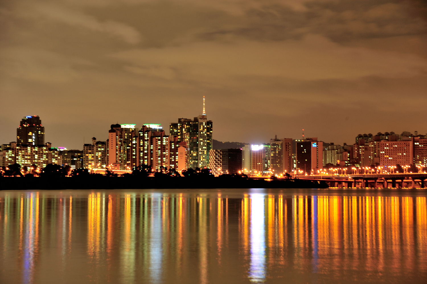 무척도 더운 날 서강대교 다리 밑에서 자장면과 짬뽕으로 저녁 식사를하고 담은 야경입니다.