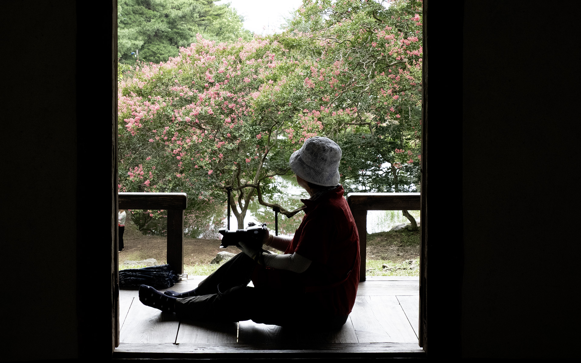 정자에 앉아