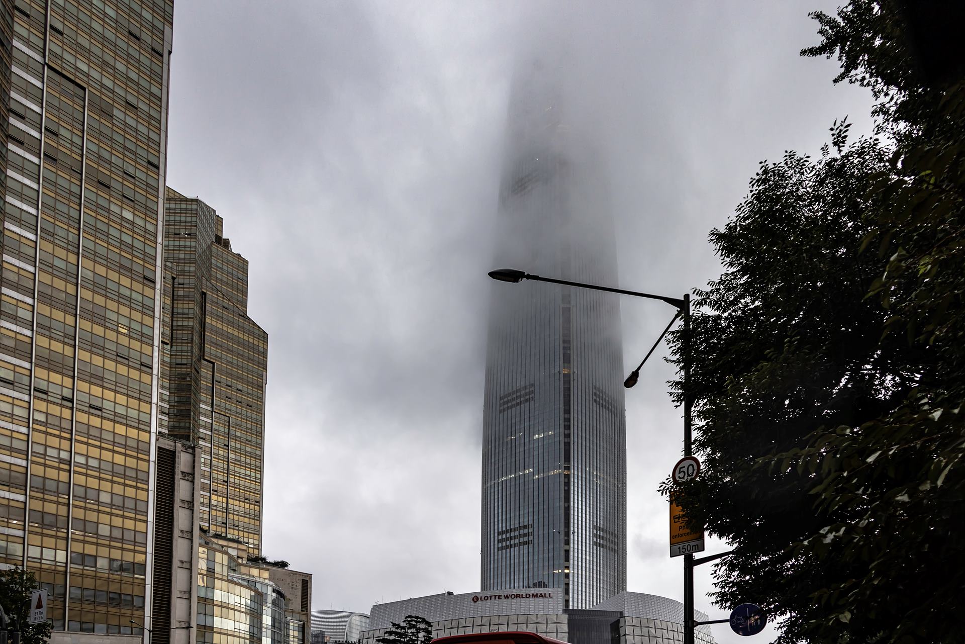 구름에 가려진 건물