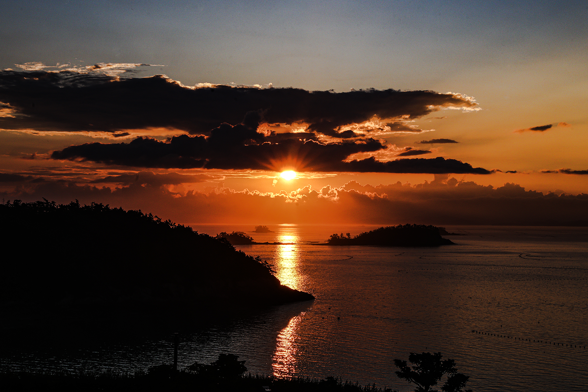남해 앞바다 에서 바라본 먹구름 사이에서