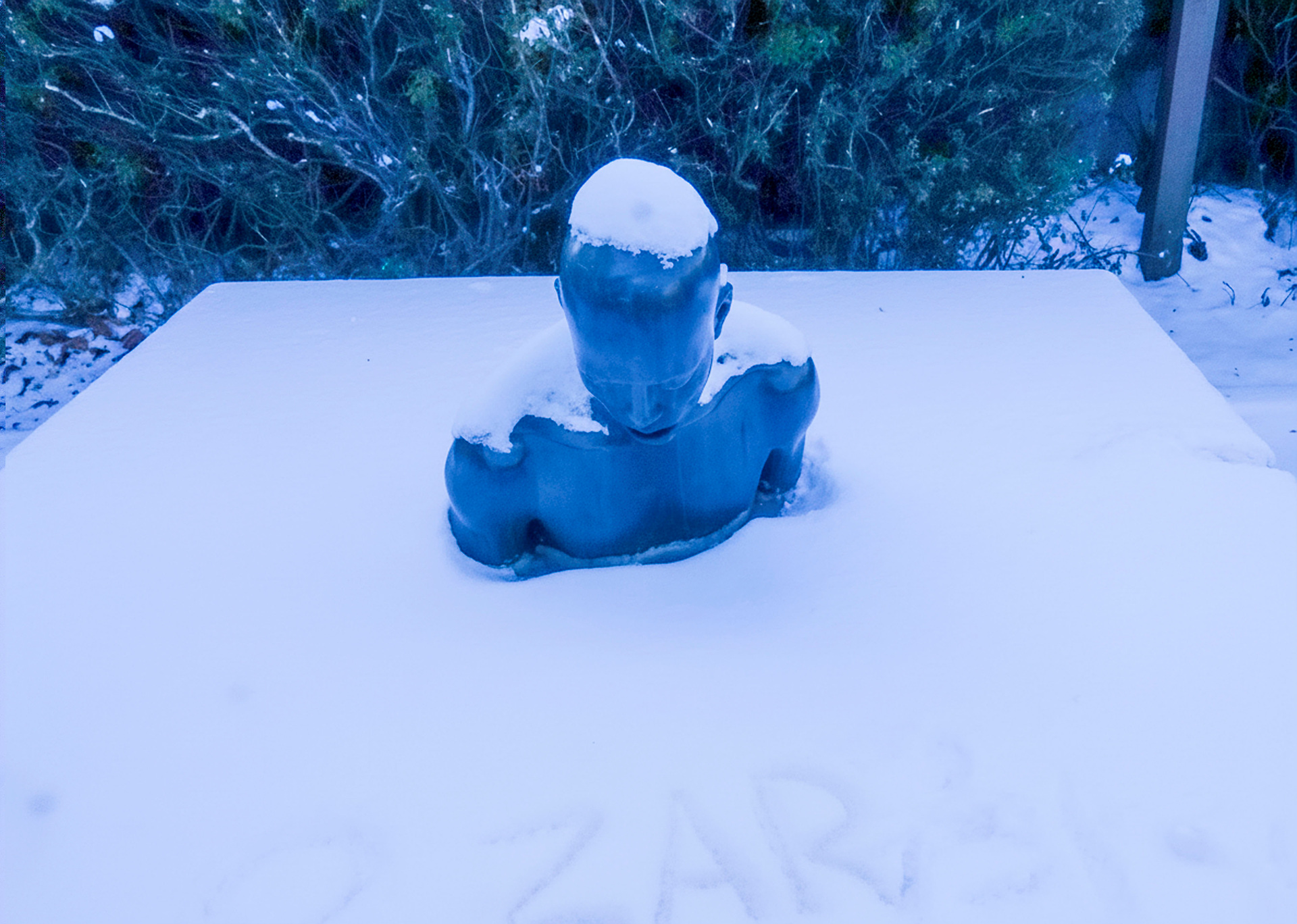 눈에 덮힌 조각상